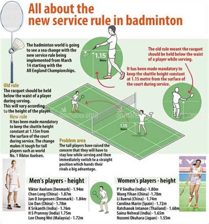 According to the new service rule, the shuttle should be below 1.15 metres from the surface of the court at the time of being hit from the server's ...