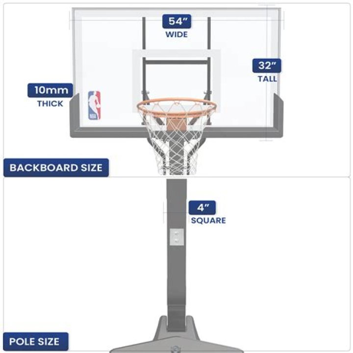 Regulation backboards are 72 inches (183 cm) wide by 42 inches (110 cm) tall. All basketball rims (hoops) are 18 inches (46 cm) in diameter.