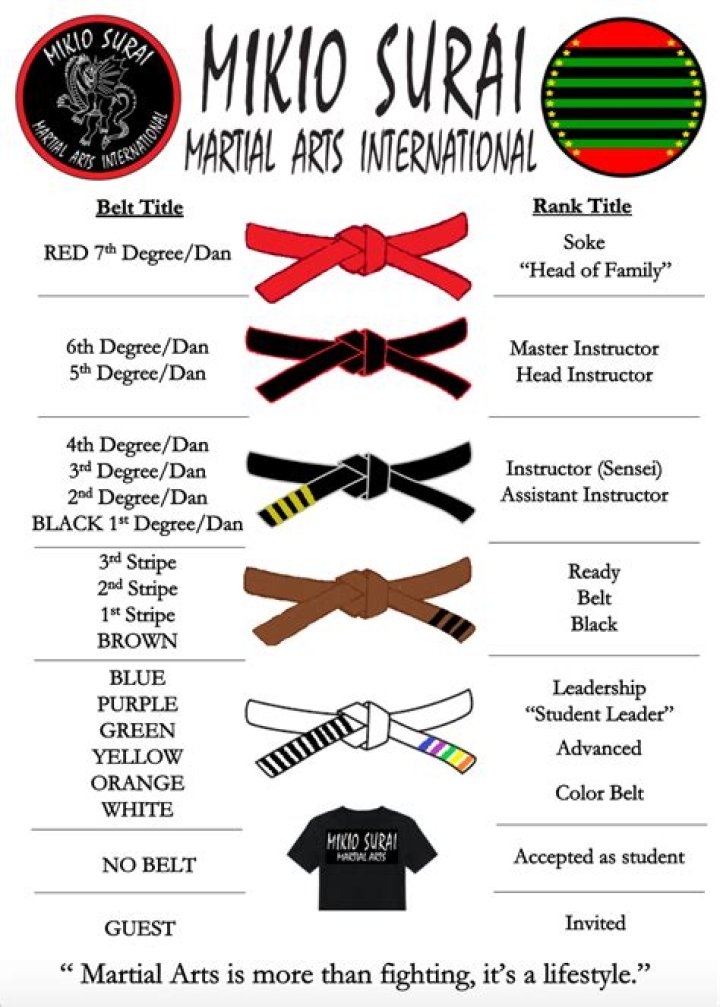 Students start the Martial Arts as a White belt, G-10 (novice). The belt ranking system then goes to Yellow, Green, Blue, Brown, Hi-Brown, and then 1st Degree Black Belt. There are Nine degrees of Black Belt. Although reaching the rank of Black Belt is quite an accomplishment, it is only the beginning.
