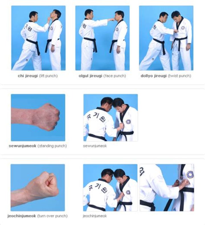 There are a number of different punches in taekwondo, but they all share the same basic technique. The Korean word for punch is jireugi. Punches are designated as being low, middle, or high depending on where they are aimed.