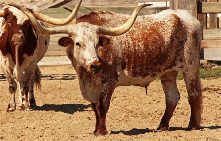 The Texas Longhorn is a breed of cattle known for its characteristic horns, which can extend to over 8 feet (2.54 m) tip to tip for cows and bulls.