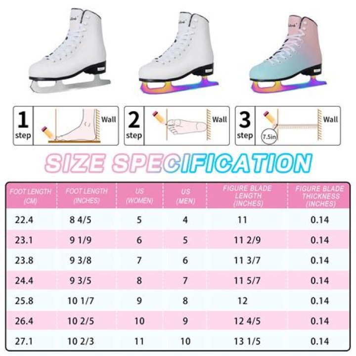 While hockey skates should be bought a size down from a child's traditional shoe size, figure skates should be the same size as their everyday shoes.